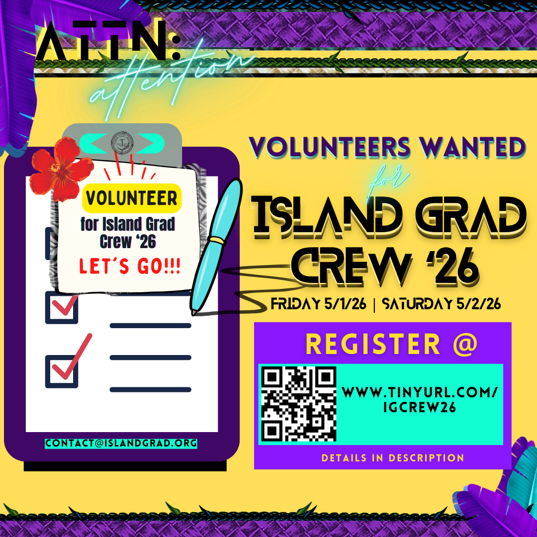 We are seeking volunteers for the 2026 Island Grad Ceremony, with opportunities available before, during, and after the event. Student volunteers may earn community service hours.